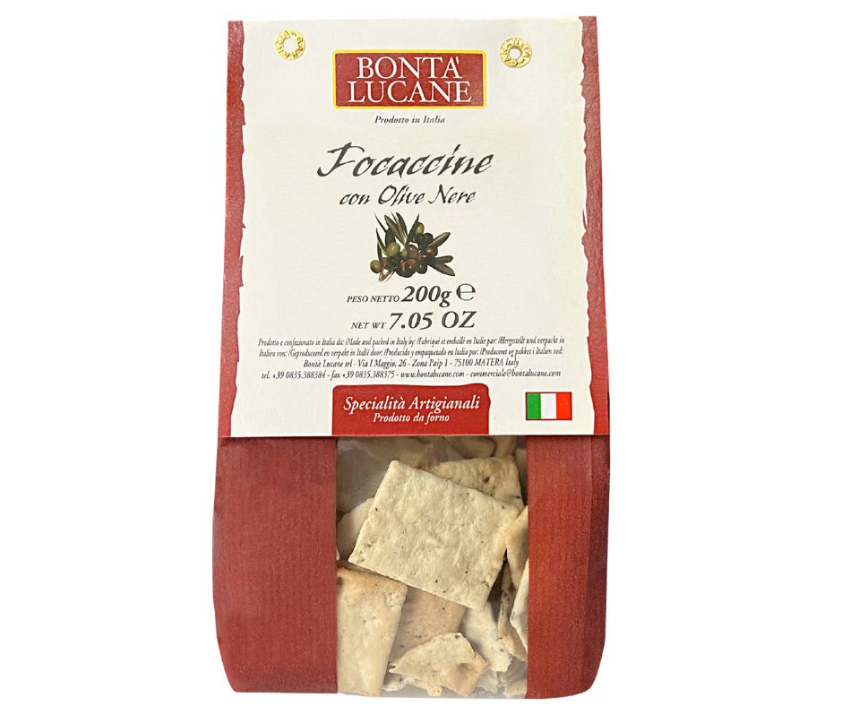 Små, luftige italienske brød bagt med ekstra jomfruolivenolie og fyldt med aromatiske sorte oliven. Den bløde krumme og den let sprøde skorpe gør dem til en perfekt snack, et skønt indslag på tapasbordet eller som tilbehør til supper, salater og oste.